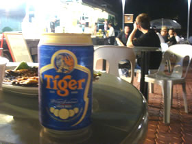 朝から歩き回って、汗かいて、火照ったカラダにビールがしみわたる〜♪普段はあんまりビール飲まない私ですが、やっぱり地元の料理には、地元のお酒が一番です。 あっさりとして、炭酸が強めの「Tiger Beer」はビール苦手の私でもグビグビです。 ぷっはぁー!サイコーじゃ! |