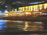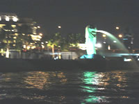 2人で飲んで食べて、もう動きたくないくらいお腹いっぱいっ☆ このホーカーズの夕食もなぜかShirlerがご馳走してくれました。 めちゃうれしいけど、いいのかな??? 腹ごなしに、ホーカーズ近くの海辺を歩いていると、 水上観光船の呼び込みに声をかけられた。 |