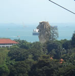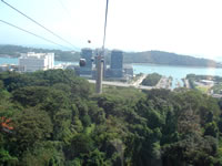 | 午後からは“セントーサ島”へ。 セントーサまでは、バス、タクシー、徒歩などいろんな横断方法があるけど、私が選んだのは、ケーブルカー☆ 全面ガラス張りだと往復でS$17もするけど、これは乗る価値大!高所恐怖症気味の私は、乗ってる間中、心臓がこれでもかーっってくらいドキドキ・・・・・・だけどマゾ体質なのでしょうか…脳内アドレナリンで超ハイテンション♪ |