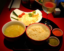 昨夜食べた“チキンライス”がめちゃくちゃ気に入って、他のお店のチキンライスも食べ比べてみたくなり、こっちにいる間、できるだけいろんな場所で“チキンライスを食べよう!”と決めた。 まずは、ガイドブックなどで有名な「Chatterbox」(メリタスマンダリンホテル内)にブランチにでかけた。 さて、お味は・・・・・・“観光局主催のベストオブチキンライスを3度も受賞している!”っていうフレコミに期待を持ちすぎたせいか、なんだかフツー。 確かにやわらかくジューシーなチキンは素晴らしいが、おとなしい、というか整理された味というか、面白みがない。なんだか普通に日本でたべるさっぱりめの和食って感じ。 もっと庶民的で大雑把な感じが好きだなぁ…。 |