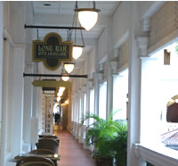 | 今回シンガポールに行くと決めてから、ラッフルズホテルに来るのを一番楽しみしていた。もちろん全室スイートというその客室に宿泊できたらよかったのだけど、まだ私はその器じゃない。 ティフィンルームや美しい中庭をぬけ、私が一番行きたかった「LONG BAR」へ。 ここは、カクテル「シンガポールスリング」発祥のバーで、オリジナルを飲める!なんて、お酒好きの私にはたまらない贅沢。 |