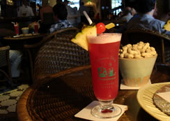 まずはやっぱり「シンンガポールスリング」。 到着した夜に自分が泊まってるホテル飲んだものとは大違い。ここが発祥で世界中に知れ渡る有名なカクテルになるだけあって、この品のある甘みと酸味が絶妙。 名物の落花生を食べて、殻を床に落として…天井のうちわでできた換気扇の穏やかな動きを見上げる。酔いがまわりはじめた頃、シンガポールの街に灯りがともる。そしてさらに賑わだす“酒場”の空気を存分に堪能する。 もう一杯!とオーダーした、「ドライマティーニ」は、私が飲んだどの「ドライマティーニ」よりも美味しかった。 |