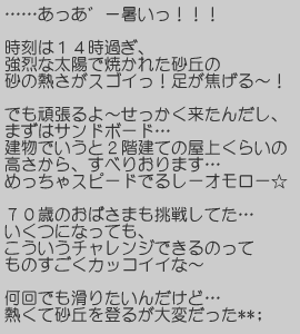 ![]() 雲一つない晴天♪「大砂丘」に到着 |