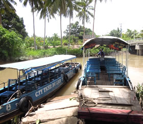 観光地を巡っている今日は、 逆にベトナムらしさに会えないのかもしれないなぁ。 でも、この雄大な川の流れを体験できて、本当によかった。 |