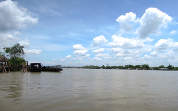 | キャンディ工場から、次は大きめのボートに乗って、メコン川クルーズ。 湖のように広いメコン川。 岸辺には家もあるけど、ボートを浮かべて暮らす人々も。 釣り船や、養殖場、洗濯物を洗う人、この川の恵みで生きている。 そういえば、タイ人のような人懐っこさは感じない。 こちらが笑顔を向ける前に、笑顔で挨拶してくるタイの人。 こちらが笑顔をむけても、ちょっと困惑した顔になるベトナムの人。 伝わりにくいけど、伝えようとすると、聴こうとしてくれるベトナムの人。 |