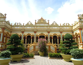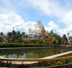 | ランチの後は、再びボートでミトーの船着場へ行き、 その後、バスに乗って「永長寺(ヴィンチャン寺)」へ。 この辺りで一番有名なお寺ということで、全てが美しくピカピカ☆ “あの世”の風景なのでしょうか… ここは、お坊さんの学校でもあるということで、 黄色の袈裟を身にまとったお坊さんがたくさんいました。 ここから、また2時間かけて、ホーチミンに戻り解散します。 同じツアーで一緒に回った方たちは、やっぱり優しい人たちばかりで、短いながら、一緒に旅して楽しかったな。 TNK TRAVEL メコンデルタ日本語ツアー×2≒6200円 |