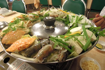 ![]() 真ん中の蓋を取るとスパイシーなスープが! |